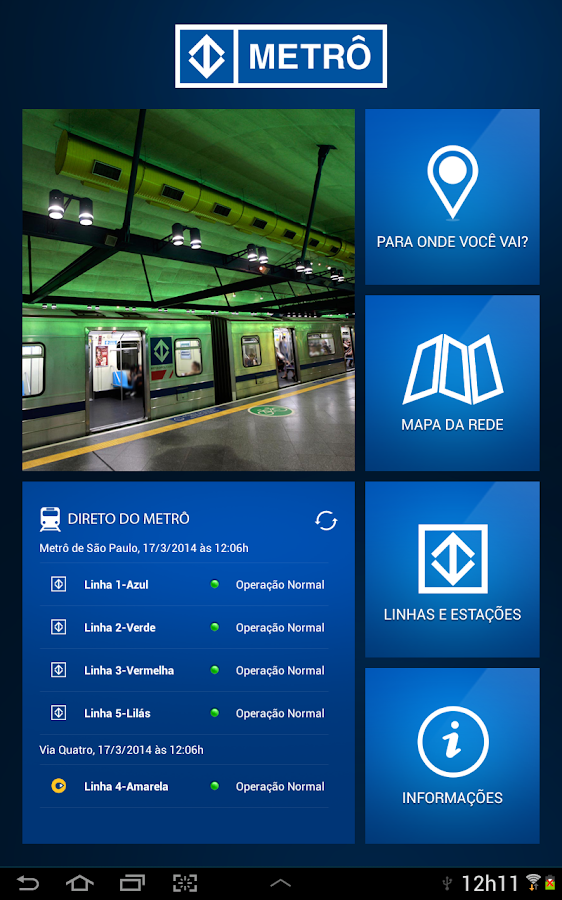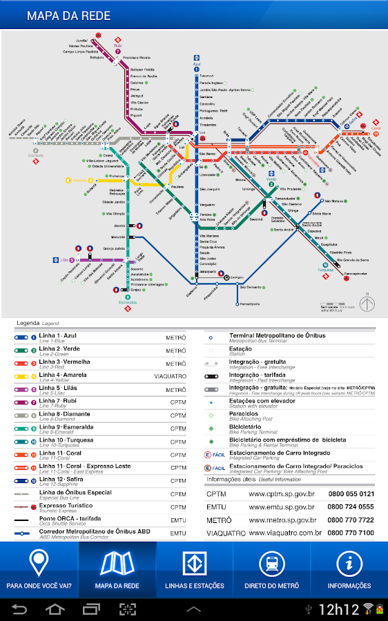 - Metrô de SPAplicativo ótimo para traçar a melhor rota utilizando o Metrô de SP e verificar o tempo e custo esperados. Além disso, é possível acompanhar em tempo real o status operacional de cada linha, consultar os valores das tarifas, horários de funcionamento e telefone úteis