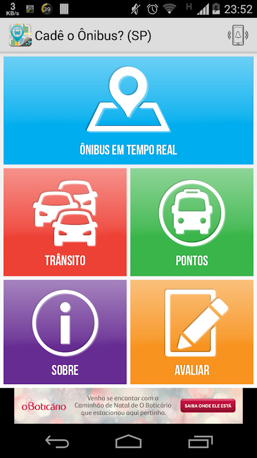 - Cadê o ônibus?Esse aplicativo mudou a minha vida! hahaha Ele tem o objetivo de facilitar o acompanhamento das linhas municipais de ônibus da cidade de São Paulo. Mostra, em tempo real, onde está o ônibus que você está esperando.