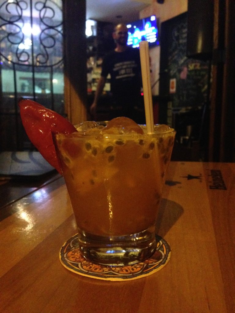 Bebemos a “Caipirinha do Amor”, inventada pelo dono do bar, o Biló. Achei sensacional a mistura das frutas mais a cachaça de primeira. Até a Bruna gostou, e olha que ela não gosta de cachaça! rs