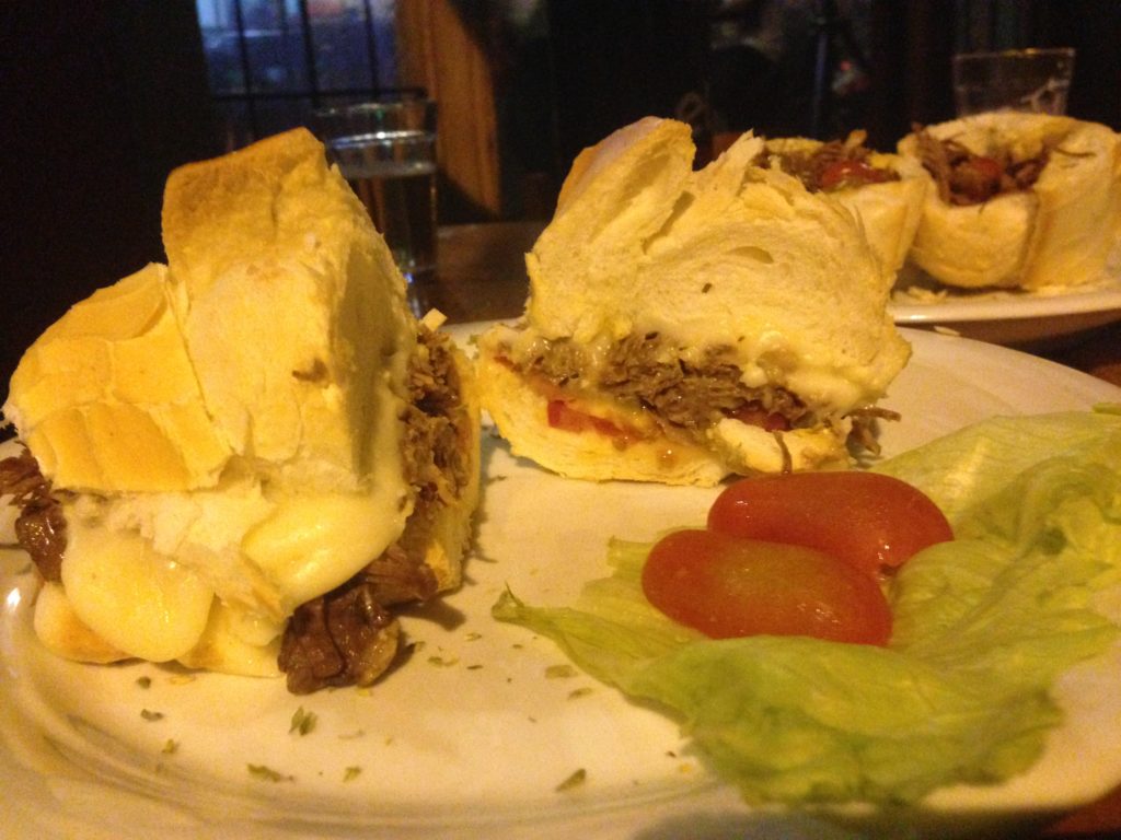 Para comer o banquete foi grande.Comemos bolinhos de costela e coxinhas bechamel. A massa desses quitutes são feitas na hora. Mas o que mais gostei mesmo foram os sanduíches. O “Buraco Quente” e o “Sanduíche de Carne Assada” são demais, gostinho caseiro mesmo, sabe? Com o pão fresquinho, então, vira golpe baixo.