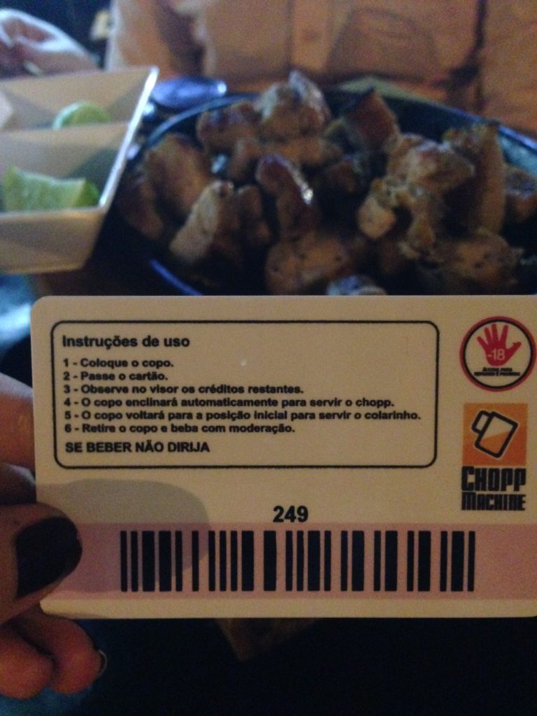 Adorei também o esquema que eles usam para o controle de venda de chopp, eles dão para os clientes um cartãozinho no qual colocam créditos e se servem na chopeira automática. O cliente pode levar o cartão para casa, tipo um playland de adulto, saca? 🙂