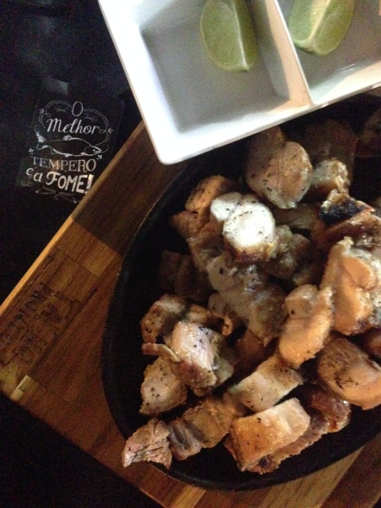 Provamos a picanha e a panceta, um prato cheio para quem curte um churrascão. A picanha é super benfeita e muito saborosa. Agora, a panceta estava demais, bem carnuda e crocante. Não estava conseguindo parar de comer.