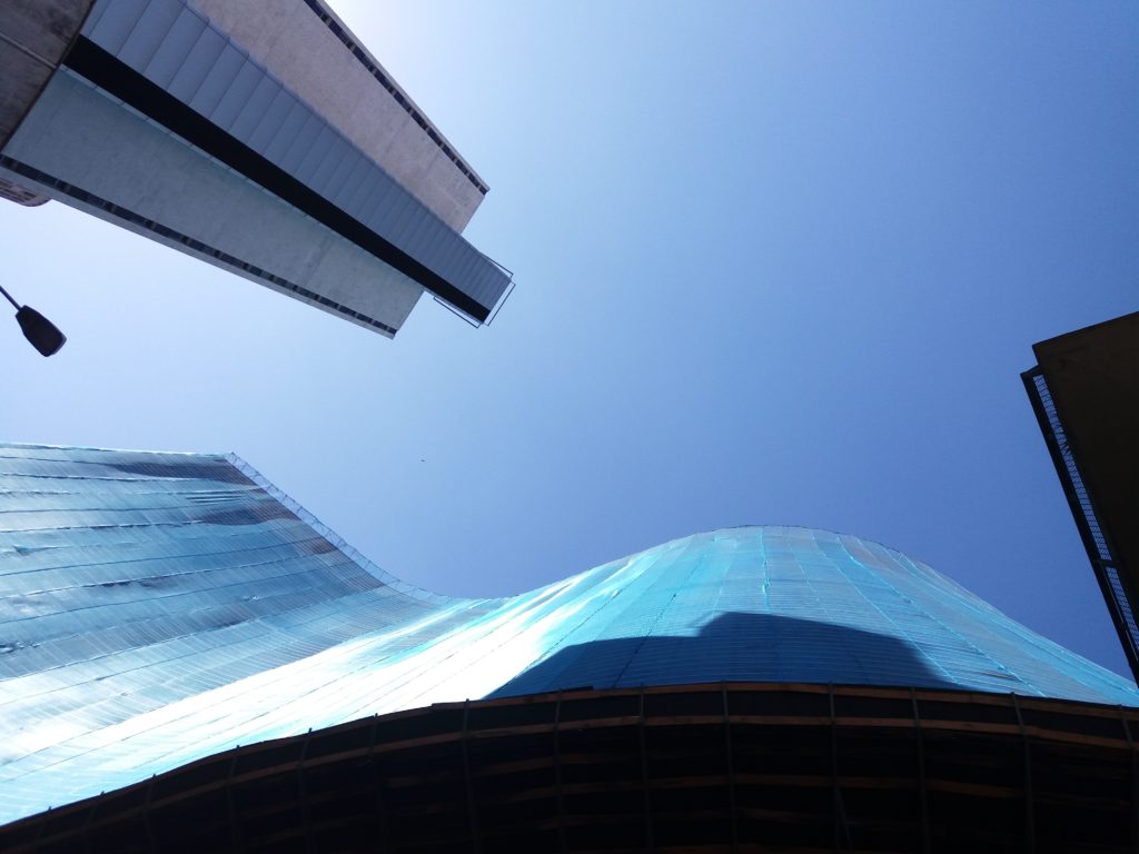 Infelizmente, atualmente o prédio está coberto – como podemos ver na foto -, para uma possível revitalização