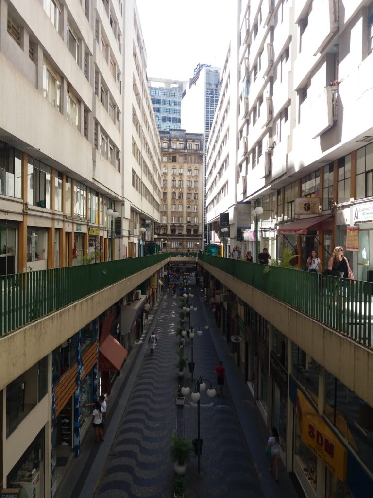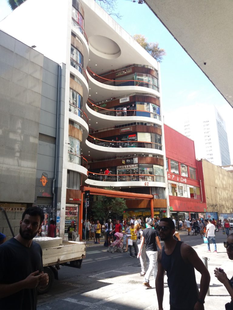 A arquitetura da galeria também é algo que chama muito a atenção com as curvas do arquiteto Alfredo Mathias. No fim do passeio ainda visitamos um jardim que existe no último andar da galeria e tem uma vista incrível do centro.