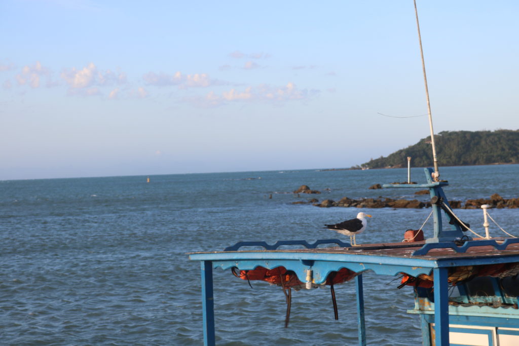 Como estávamos hospedados perto, decidimos ver o Pôr do Sol na Praia de Manguinhos, pelo que vimos a prática é bem comum por ali. Quando chegamos no pier da praia, tinham várias pessoas sentadas já contemplando o pôr do Sol (nós gravamos um timelapse, veja no vídeo). 🙂