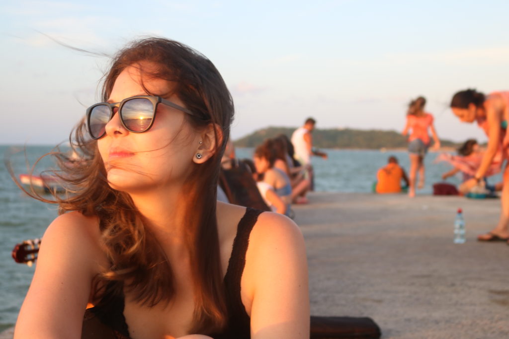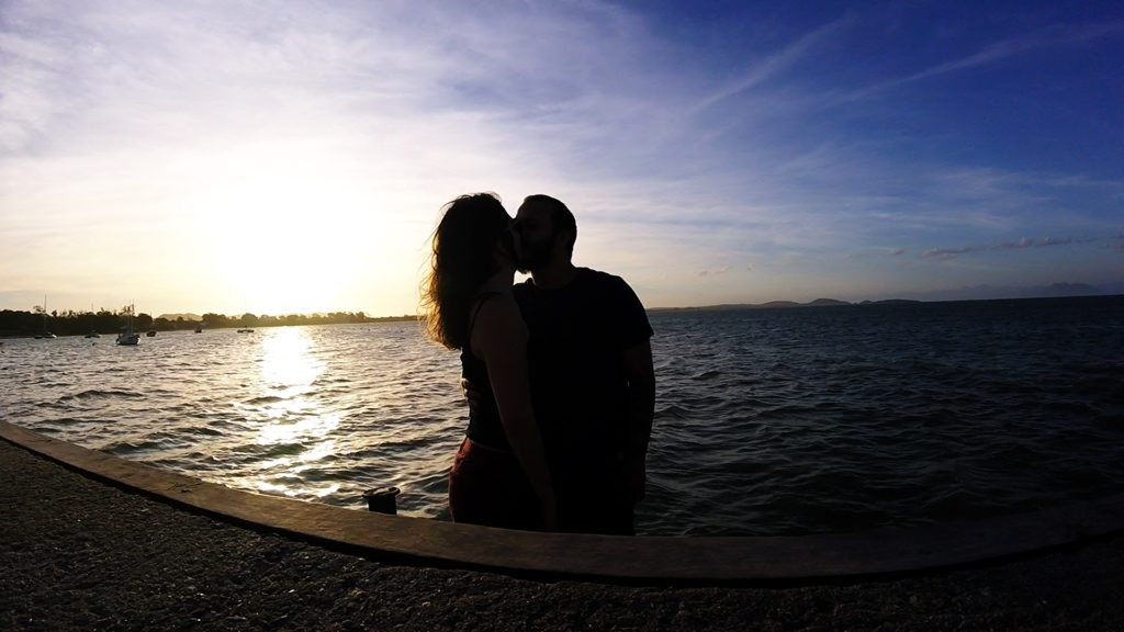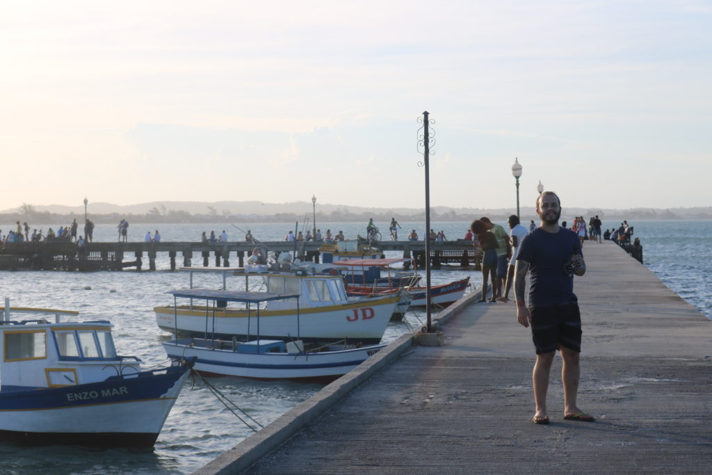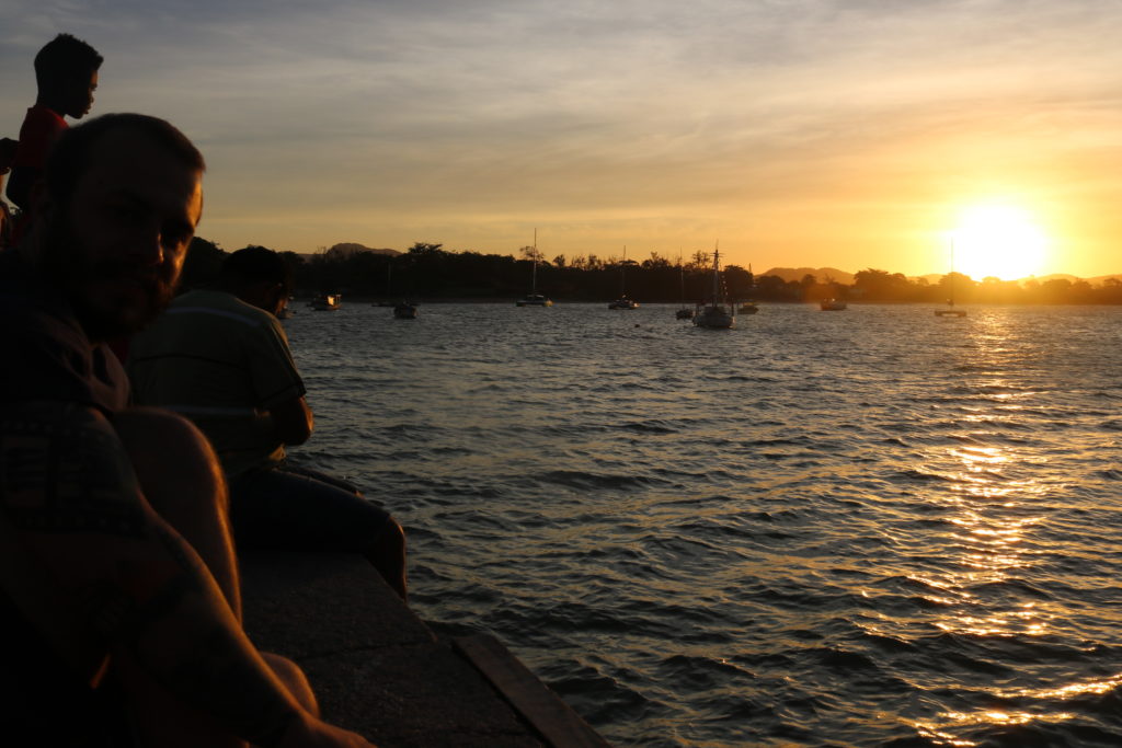 Para nossa sorte, um grupo de jovens estava próximo cantando e tocando violão, outro grupo pulava do pier e mergulhava no mar. Muitos casais e famílias também aproveitavam o momento para ver o pôr do Sol. Foi muito bom!