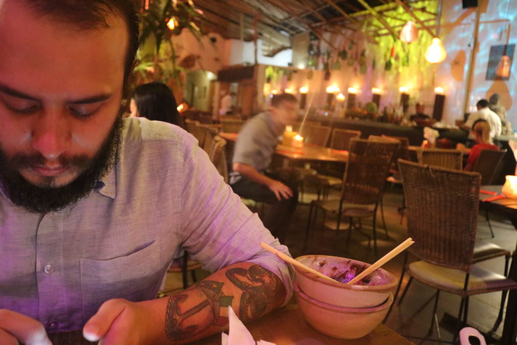 Então, tudo o que já ouvíamos falar sobre o Tantra foi concretizado. A visita ao restaurante é um experiência sensorial incrível que nos faz explorar não apenas o paladar, mas todos os sentidos. O ambiente é bem gostoso e aconchegante, com a luz baixinha e músicas típicas. Ficamos encantados desde o início com a quantidade de detalhes e cuidado com a decoração e organização, e não conseguimos parar de tirar fotos!
