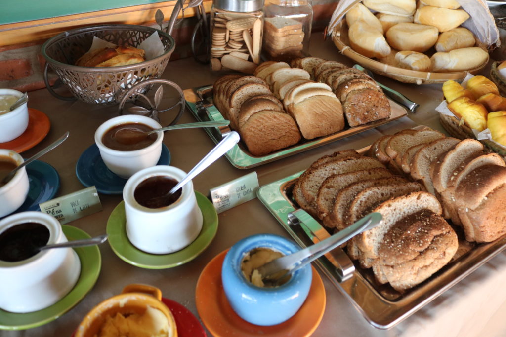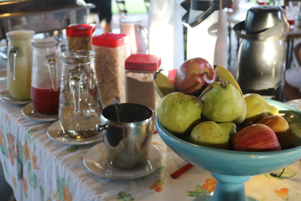 Acredito que o café da manhã foi o melhor de pousada que já provei. Além de muitas opções de frutas, bolos, pães, cereais, a lenha queimada que sentíamos entrando no quarto tinha uma razão: o fogão a lenha ficava ali mesmo no restaurante mantendo quentinhos os pães de queijo e quiches. E quem quisesse um ovo mexido ou pão na chapa? Frigideiras de ferro ficam à disposição para prepararmos do jeito que quisermos.