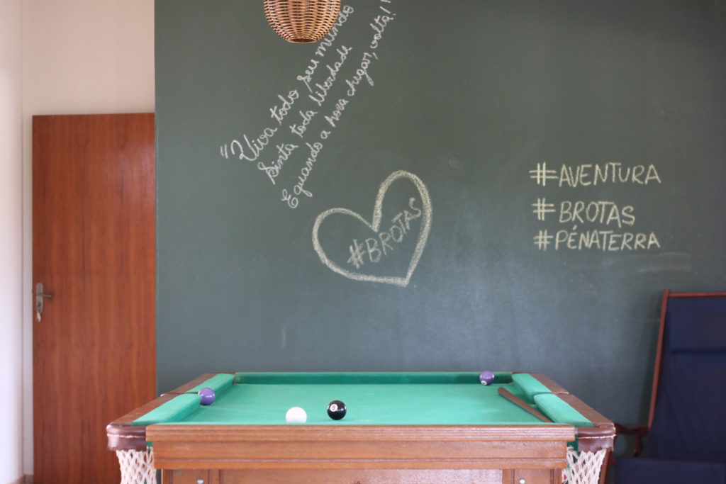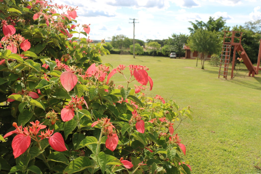 Além de um espaço muito grande, a pousada conta com algumas características bem legais, como, por exemplo, bicicletas para emprestar para quem quer dar uma pedalada; pomar; campo de futebol; várias árvores com flores; sala de jogos e os chalézinhos isolados da casa principal.