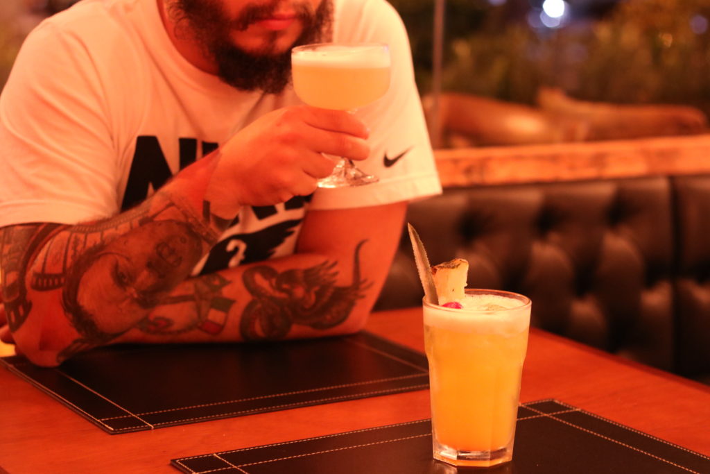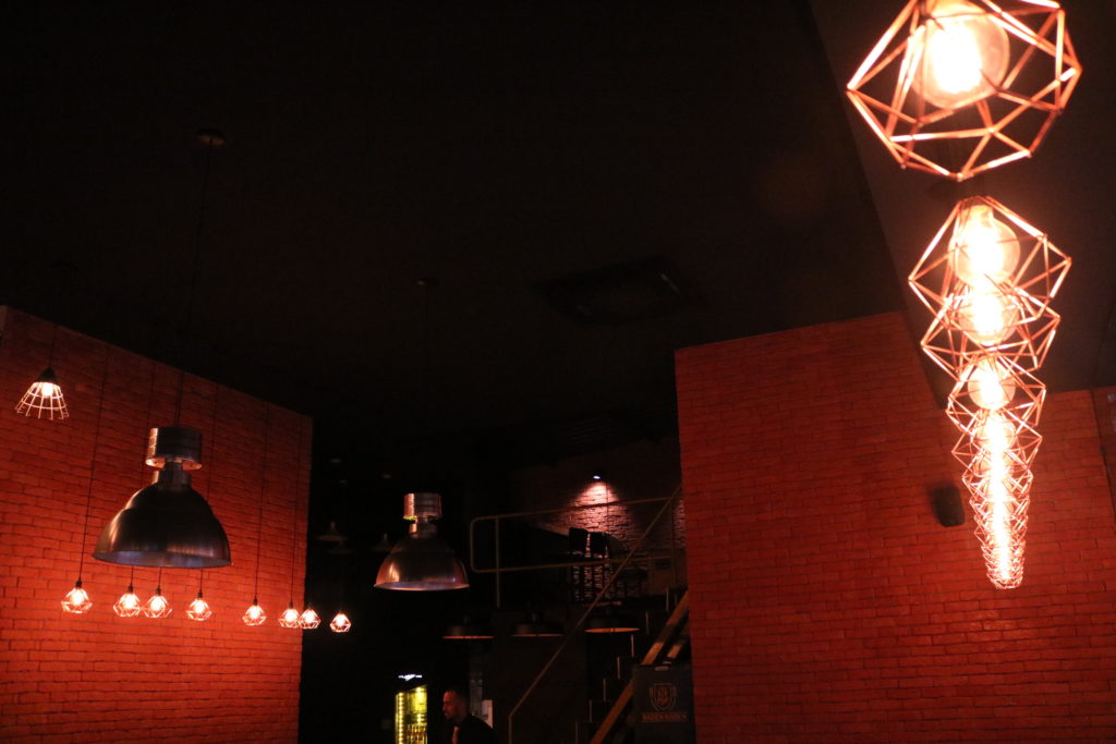 Duas coisas chamaram muito atenção e nos deixou bem felizes: o bar é bem novinho, inaugurou há seis meses, e já tem uma puta personalidade e uma decoração incrível; a outra é que eles fabricam seu próprio gin, o Draco Gin, que é apenas um mês mais velho que o bar, porém já tem alguns feitos interessantes, por exemplo: obteve a 7ª posição no ranking dos 10 melhores gins premium do mercado, em um teste cego realizado sala privada do Empório Frei Caneca, concorrendo com os nomes mais importantes do mundo do gin.
