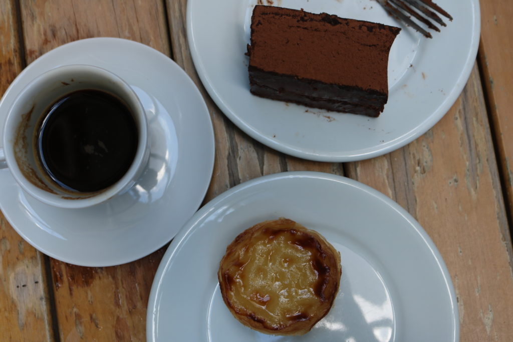 E aí que não conseguimos resistir aos doces lindos que estavam lá. O Fe pediu uma fatia de bolo trufado e eu quis experimentar o pastelzinho de nata. Superfresquinhos e saborosos.