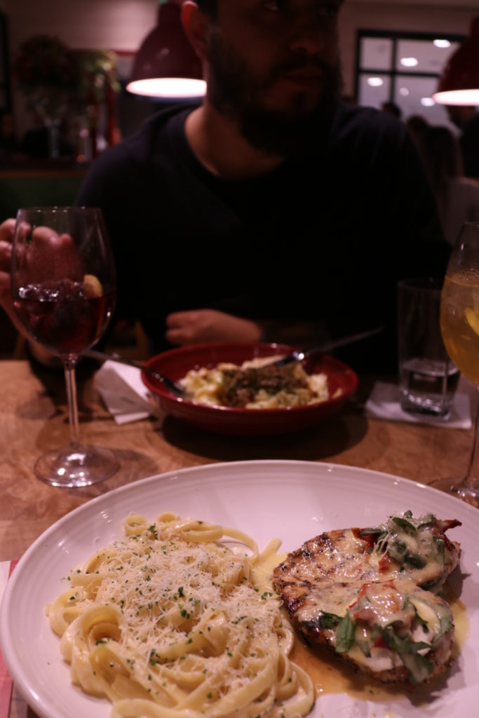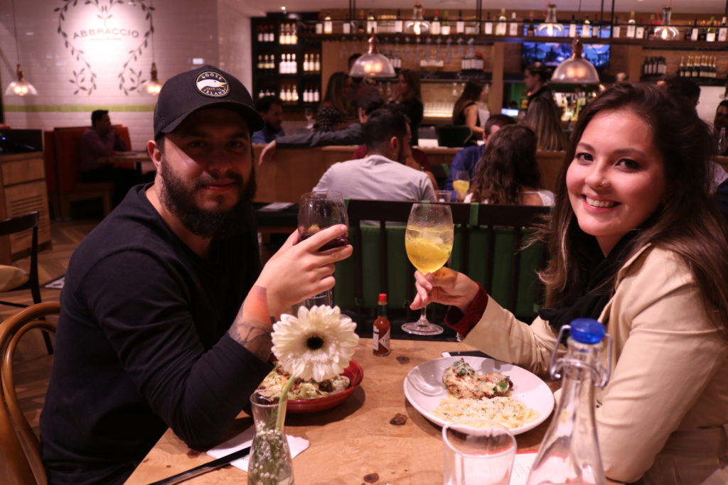 Para quem não sabe, o Abbraccio faz parte da Bloomin’ Brands, mesmo grupo do Outback. <3 Já dá para imaginar o quanto os pratos, petiscos e tudo são muito saborosos, né? Tenho que dizer que estou em um relacionamento sério com Pollo Brianni com Fettuccine Alfredo (R$ 48,50) acompanhado da Sangria de Frutas Cítricas (R$ 23). A escolha do Fe foi o Pappardelle Al Ragù Di Ossobuco (R$ 61,50) ele já falou sobre o prato neste post.