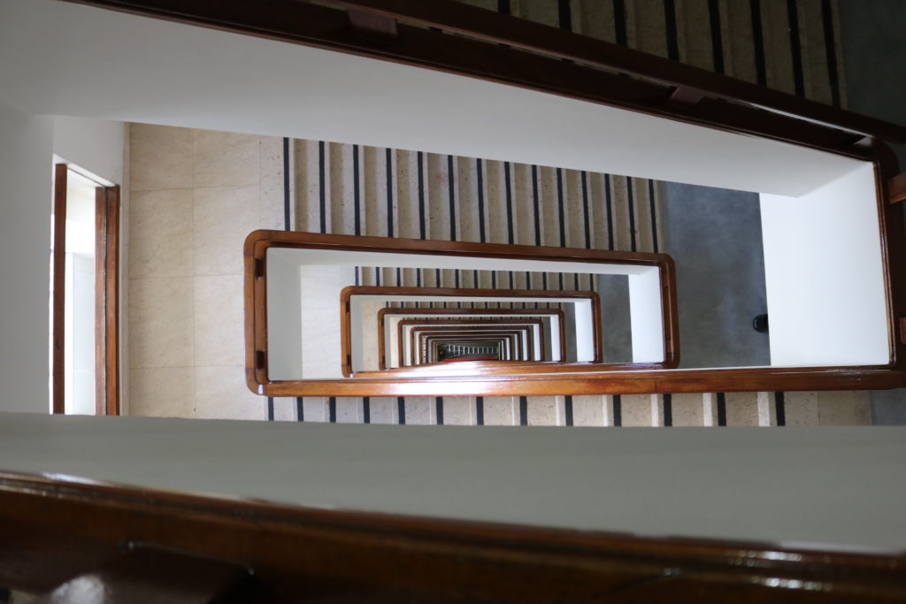 A monitora (infelizmente não lembramos o nome), nos conduziu ao interior do edifício e contou um pouco sobre a estrutura também. No subsolo há uma apresentação sobre a história da família Matarazzo e, em seguida, subimos para o topo do prédio. Conforme íamos ouvindo a história do local, cada vez mais ficamos empolgados para conhecer o seu jardim.