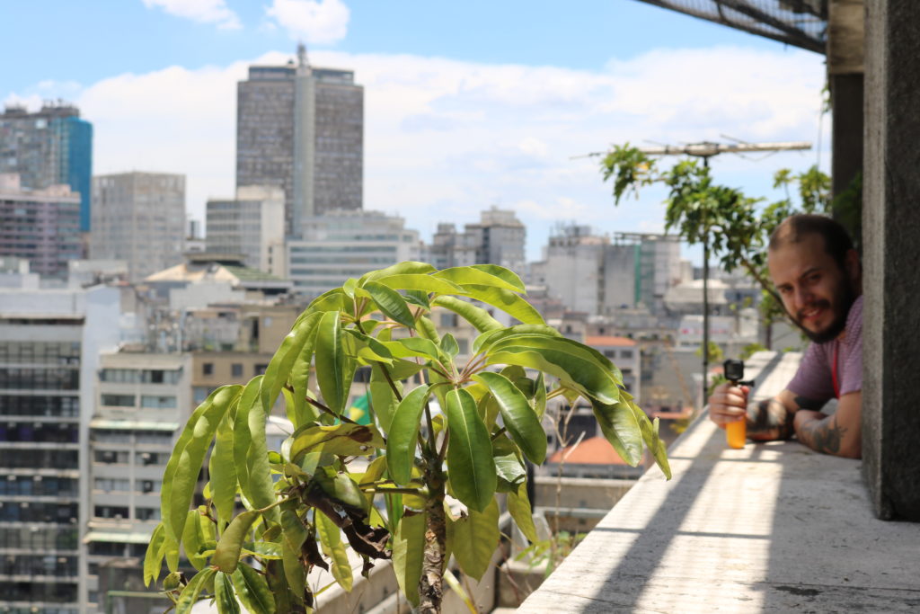 Continuando com nossa série “São Paulo do Alto”, desta vez, viemos contar sobre o incrível jardim suspenso no topo do Edifício Matarazzo, atualmente sede administrativa da Prefeitura de São Paulo. Os olhares mais apressados nem imaginam que lá existe um lindo jardim e um pequeno lago com carpas, mas se parar para prestar atenção, até mesmo de baixo é possível ver as folhas das mais diversas espécies de vegetais – cerca de 400! -, incluindo o Pau Brasil. Confesso que só passei a reparar depois que fomos ao edifício.