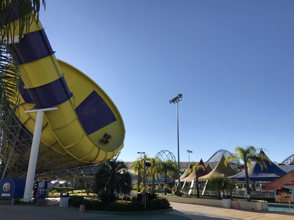 Acredite: um parque aquático pode ser divertido também para adultos. O Felipe e eu fomos e nos divertimos como se fossemos crianças. O convite do Wet’n Wild era para curtirmos o dia no parque e à noite conhecermos as novidades para as Noites Macabras deste ano. Foi um dia e tanto! Ainda mais que não sabíamos que o parque abria no inverno, já que eles possuem água aquecida durante os meses de maio a agosto.Por não ser alta temporada, o parque estava tranquilo. Então conseguimos ir em todos os brinquedos que queríamos tranquilamente. Só não era tranquilo os toboáguas. Não teve um que não ficamos com frio na barriga, nos arrependíamos no meio e saíamos com as pernas bambas. hahaha Para relaxar ficamos um pouco na praia artificial e também na Ilha Misteriosa do Cascão (área para crianças), lá a piscina chega a uma temperatura bem mais quentinha que as demais atrações.