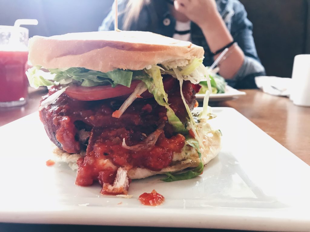 Nossos “pratos principais” foram totalmente bipolares: a Bruna foi de Hambúrguer Vegetariano com salada (R$ 28), o e eu de Coronel (R$ 36).