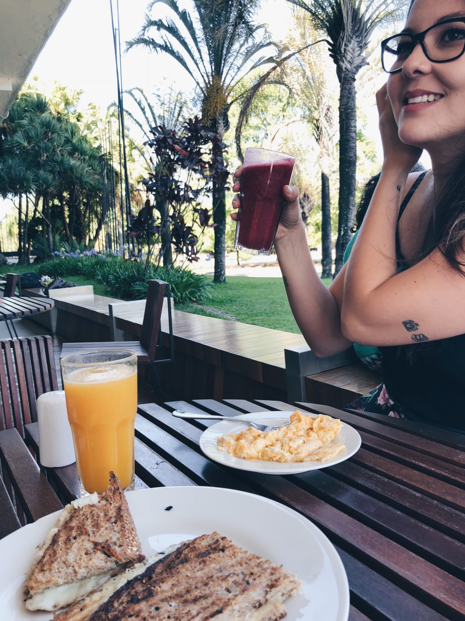 Um fato interessante é de uma moça ao nosso lado, que parecia já ter completado sua corrida do dia e, enquanto tomava seu café e ouvia música, fazia uma pausa para a meditação. Prova de que ali é um ambiente para sentar, curtir e saborear um café da manhã sem a pressa do dia a dia agitado que estamos acostumados.