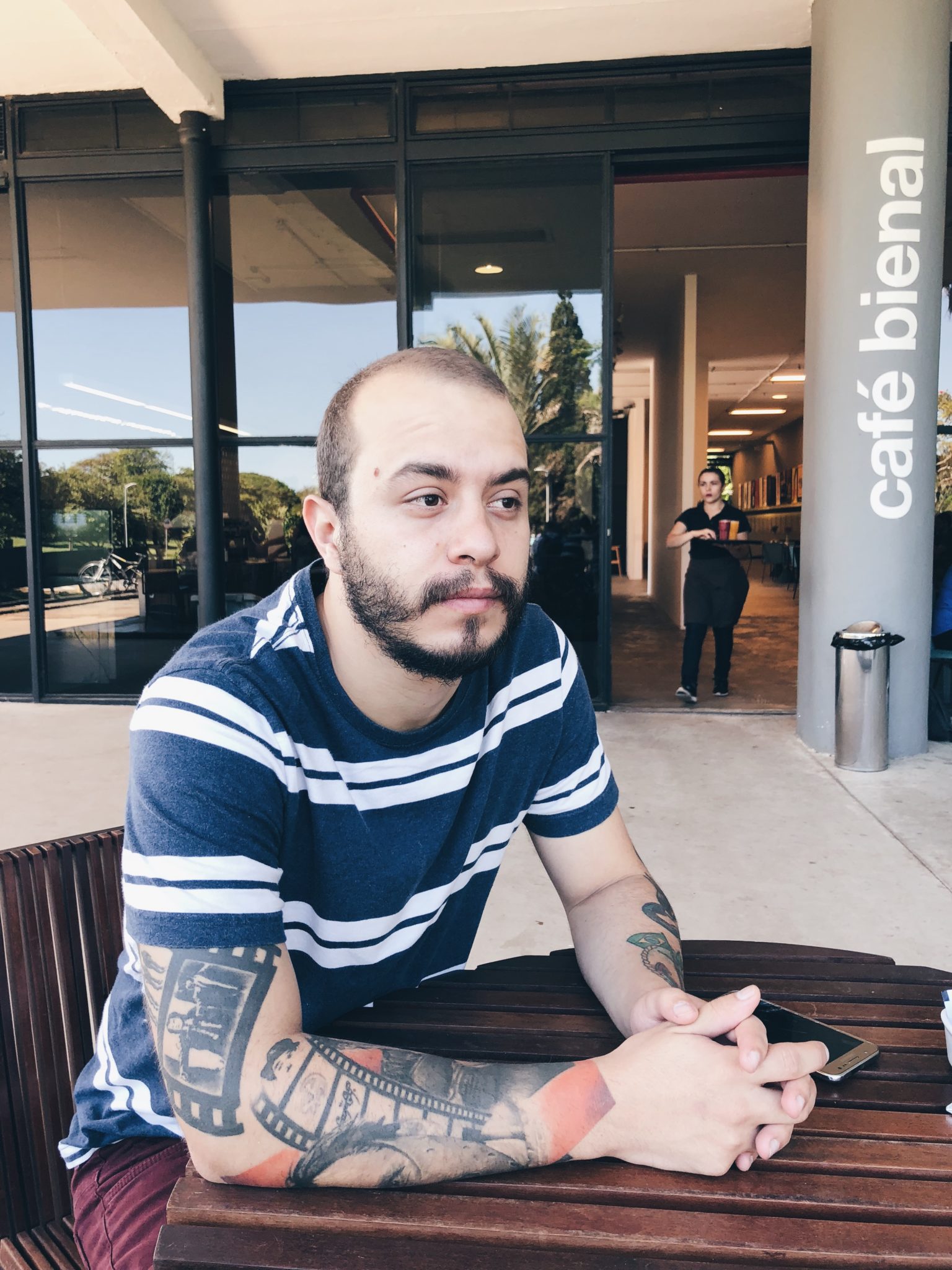 As mesinhas que ficam ao lado de fora são superdisputadas. Fomos num domingo por volta das 9h da manhã e demos a sorte de conseguir uma para nós. O dia prometia bater acima de 30ºC, mas a correnteza do vento que passava por ali, deixava tudo mais fresquinho, sem contar a vista incrível para o Parque Ibirapuera.