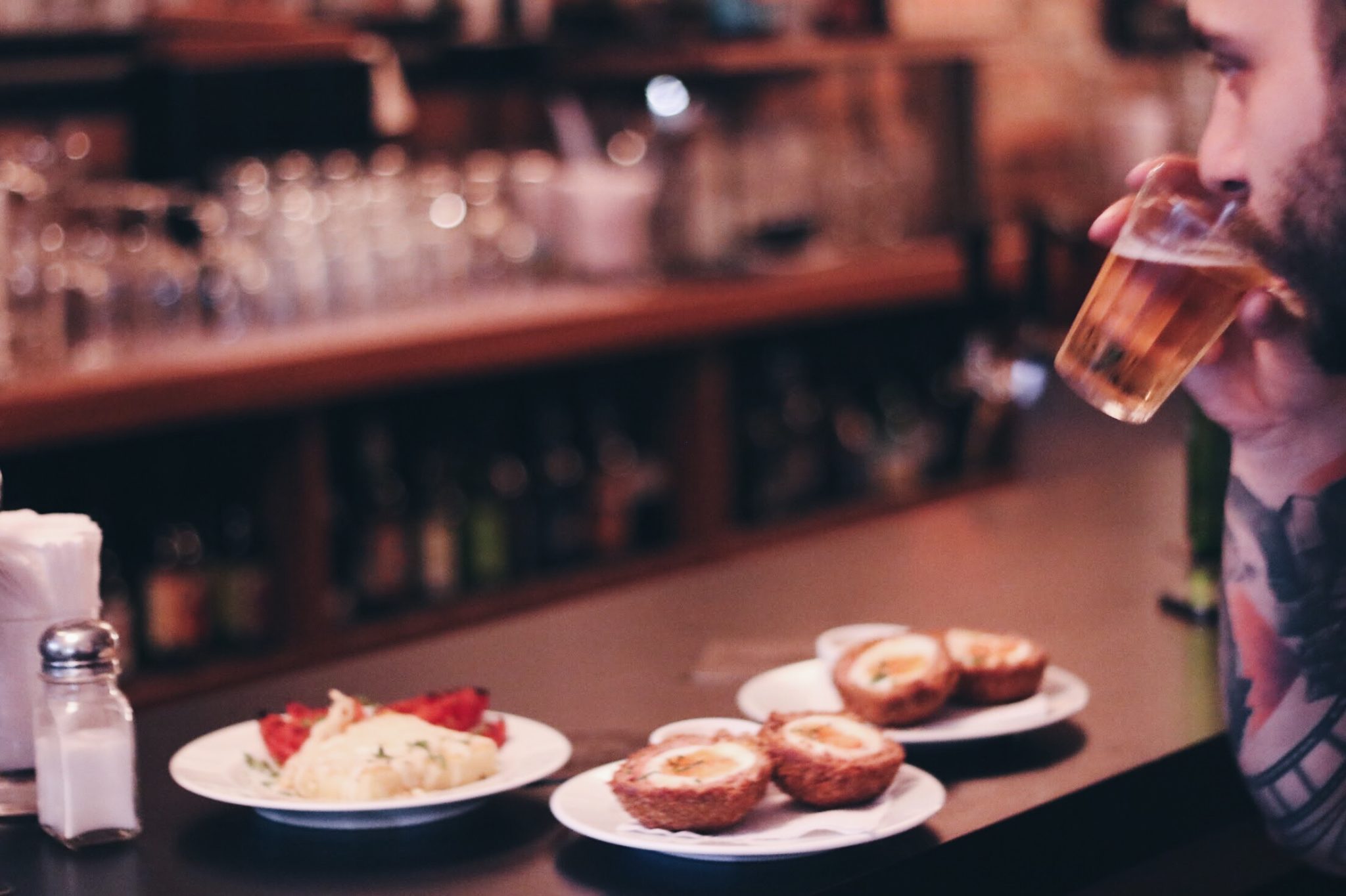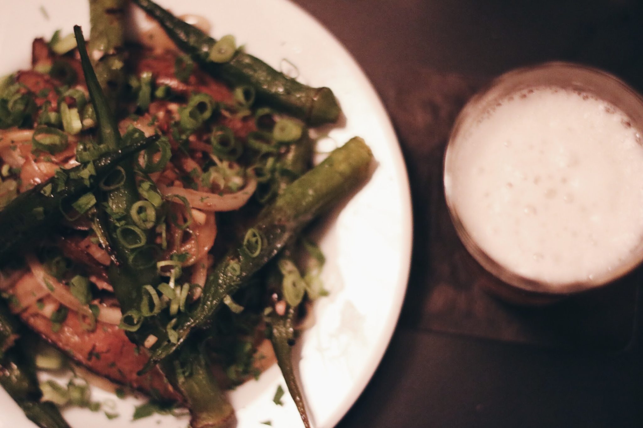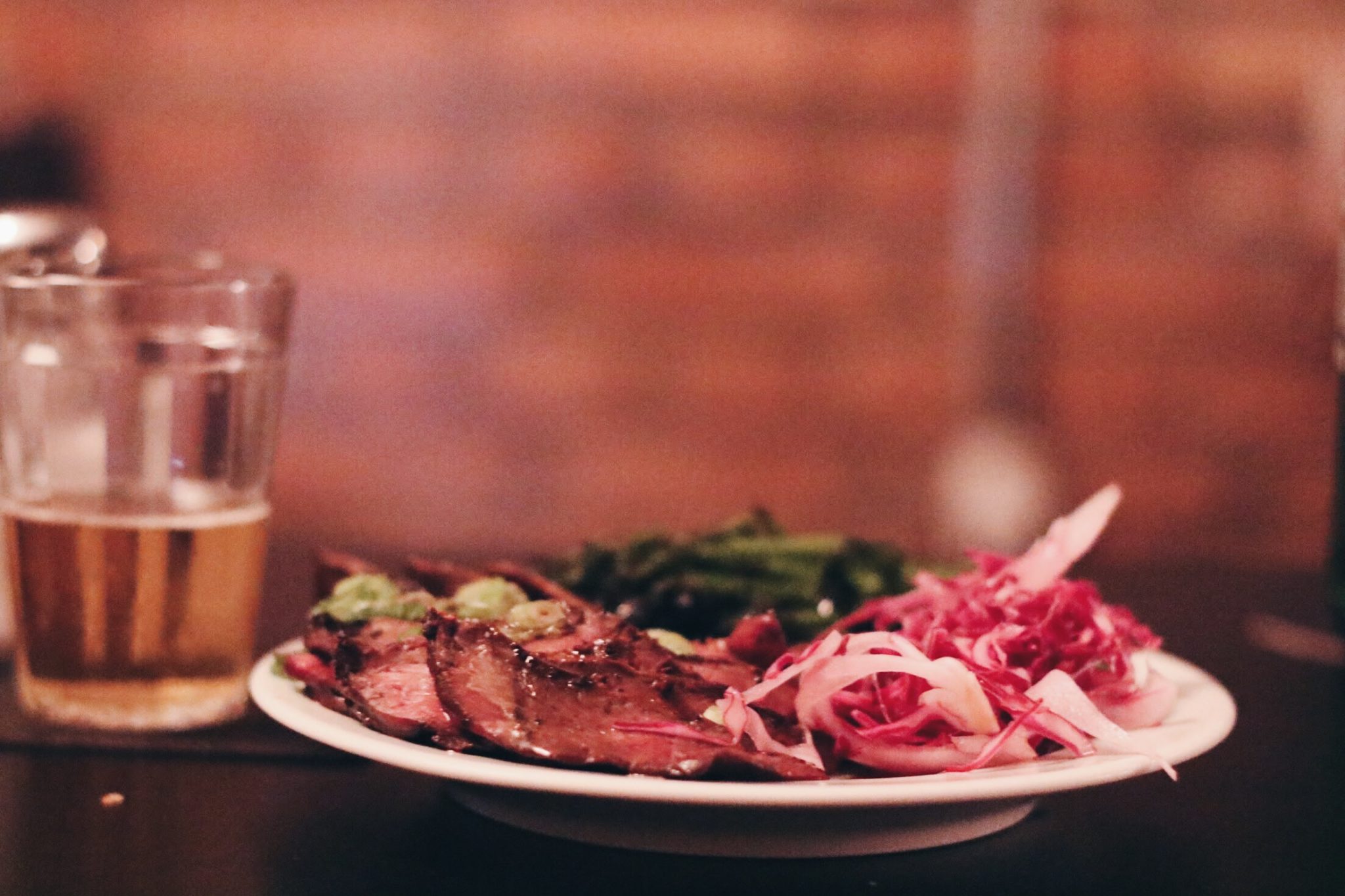 Adentrando no bar, nos deparamos com um ambiente muito interessante, com ar moderno, um bar com drinques arrojados e do outro lado uma cozinha com conceitos de bares tradicionais – coisa que ficou clara em uma pequena lousa que descrevia dois dos pratos do dia: coração de boi e fígado.