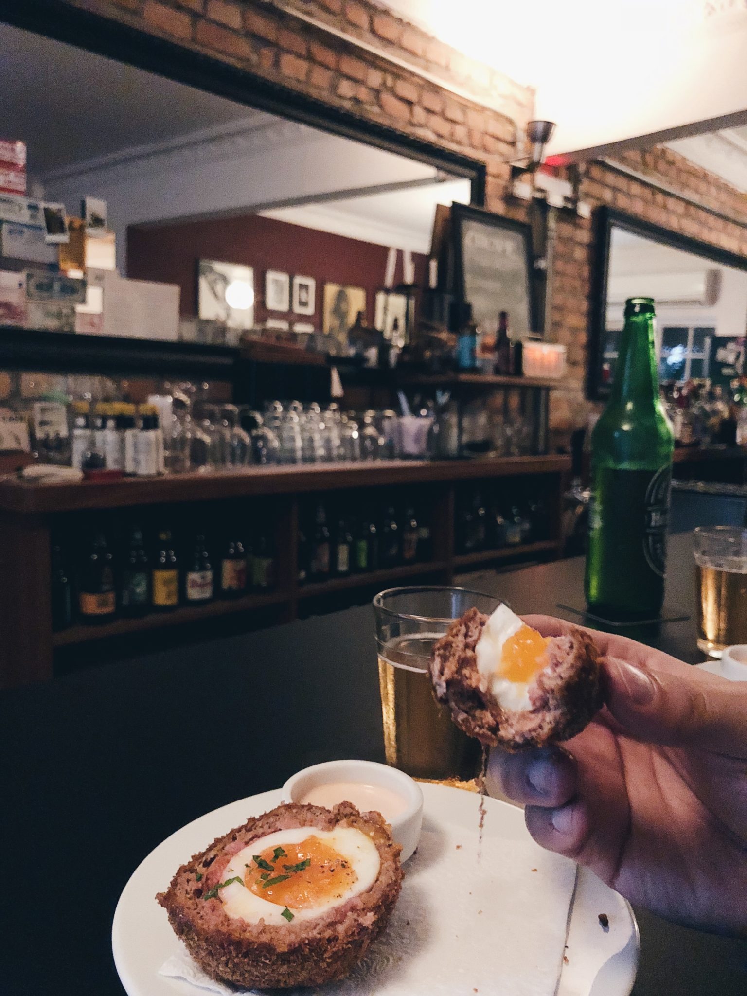 Na verdade, fomos para conhecer o famoso bolovo deles. Sem pestanejar, foi o melhor que eu comi até agora! Ele vem meio mole, bastante carne e apenas uma casquinha crocantezinha. A parada é sinistra. Provamos a Polenta com Parmesão que também é feita na churrasqueira e uns Picles Empanados. Daora, né?