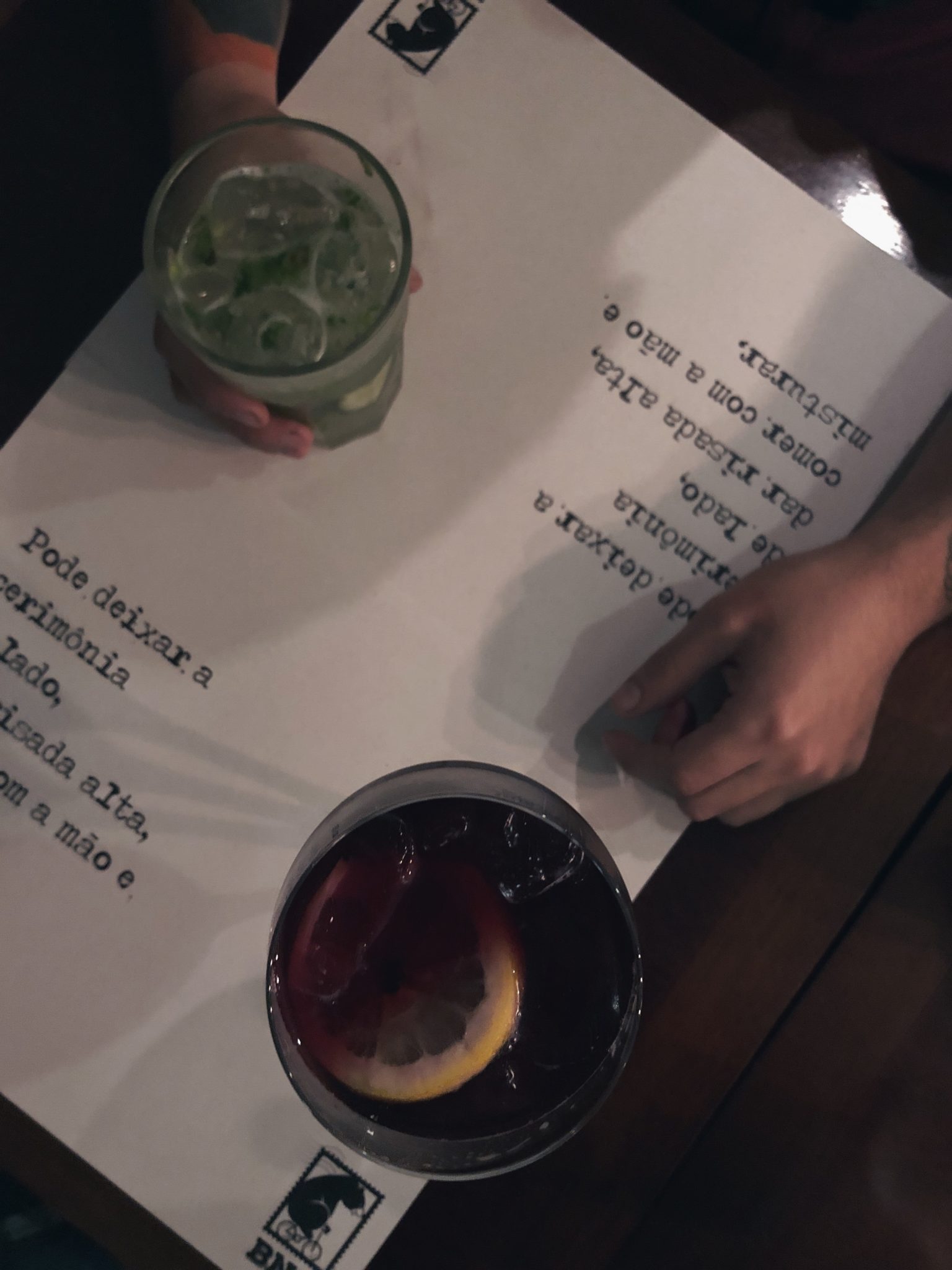 Pedimos também as duas opções de welcome drink: Gin Tônica e outra bebida chamada Verona que leva vinho, schweppes e limão siciliano. São bebidas extremamente refrescantes e estavam muito bem feitas, além de eu achar um charme, bebidas que levam vinho é muito ousado. hahaha