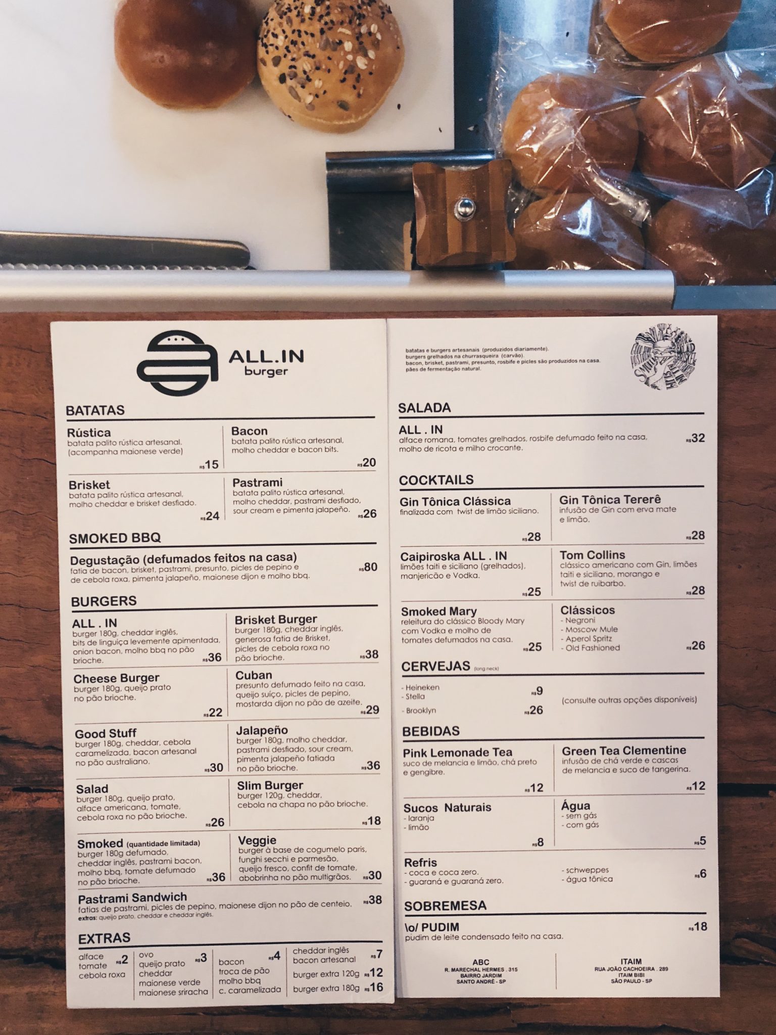Depois de conhecermos o ALL IN . Burger num evento para o Dia Mundial do Hambúrguer, ficamos supercuriosos para visitar, de fato, a casa deles em Santo André. Tanto pela originalidade dos lanches, quando pelo sabor do maravilhoso hambúrguer defumado, que nunca mais conseguimos encontrar igual, mas que ficou marcado na nossa memória. Eis que recebemos um convite para conhecer a novíssima unidade, inaugurada em março deste ano, no Itaim Bibi, e já sabíamos que a experiência seria especial.