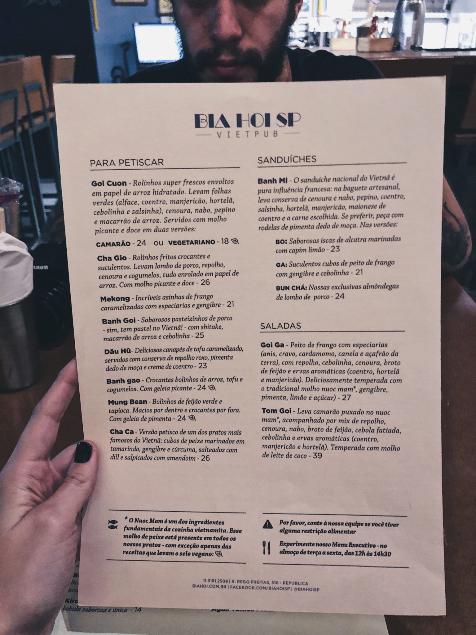 Inaugurado no fim de 2017, o Bia Hoi SP já é superqueridinho de quem frequenta o centro da cidade. E não é por menos: o primeiro boteco vietnamita de São Paulo – como eles mesmos se rotulam – tem personalidade. É perceptível o cuidado que a chef Dani Borges teve ao pesquisar in loco, mais especificamente em Hanói, os sabores e costumes. Trazer essa cultura gastronômica para o Brasil é um tanto quanto ousada, os paladares daqui estão acostumados a associar a comida asiática com pratos frios. Mas deu supercerto! O que significa Bia Hoi? Chope ou choperia em vietnamita. “O Bia Hoi SP, um bar que tem o espírito dos bia hois de Hanói, onde chope, comida boa e muita alegria são os principais ingredientes”, descrevem no site.