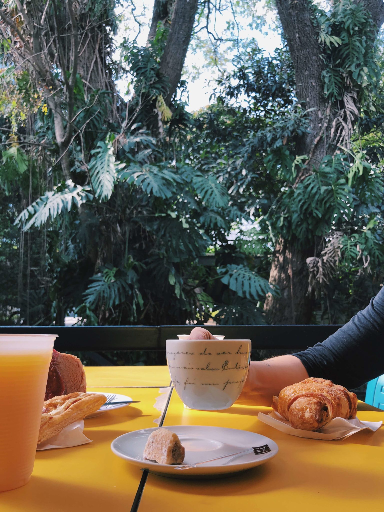 Sim e sim! O CCSP conta com uma lanchonete e um restaurante. Comemos croissant e um bolo. Estava tudo muito maneiro e sentamos em uma mesinha do lado de uma parte bem arborizada uma delícia para quebrar a rotina. Já não podemos falar do restaurante! A Bruna ia lá há muito tempo atrás quando trabalhava nas redondezas, porém como faz muito tempo não sabemos como está. E lá dentro tem uma unidade da famosa Endossa, difícil é tirar a Bruna lá de dentro. rs