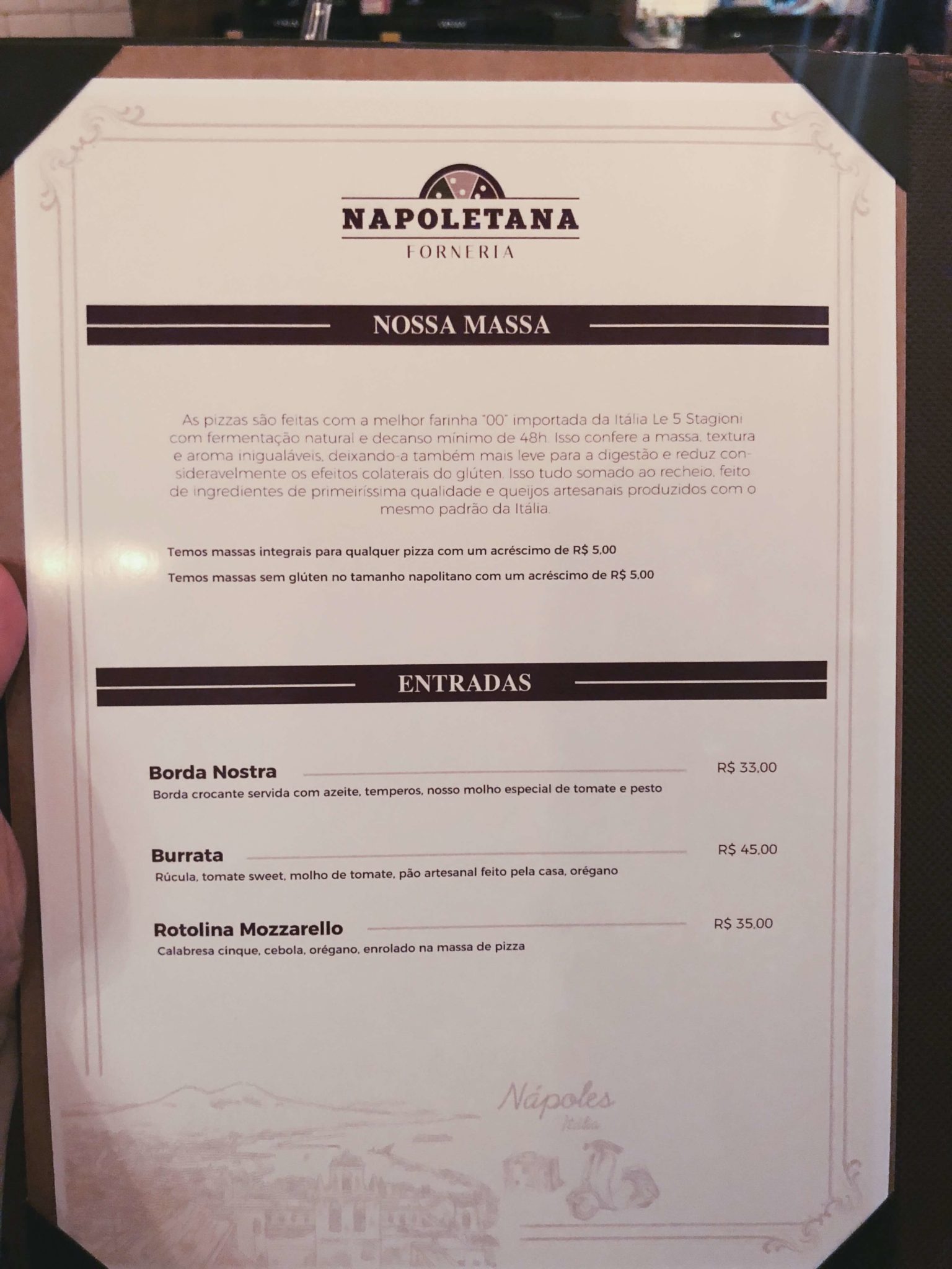 Depois da decoração, a segunda coisa que nos chamou a atenção na Napoletana Forneria foi a massa deles, e isso tem algumas explicações: a primeira é a fermentação que é feita naturalmente num período de 48h e, além disso, ela é feita com a farinha “00”. O resultado de todas esses detalhes é uma massa bem macia, saborosa e leve.