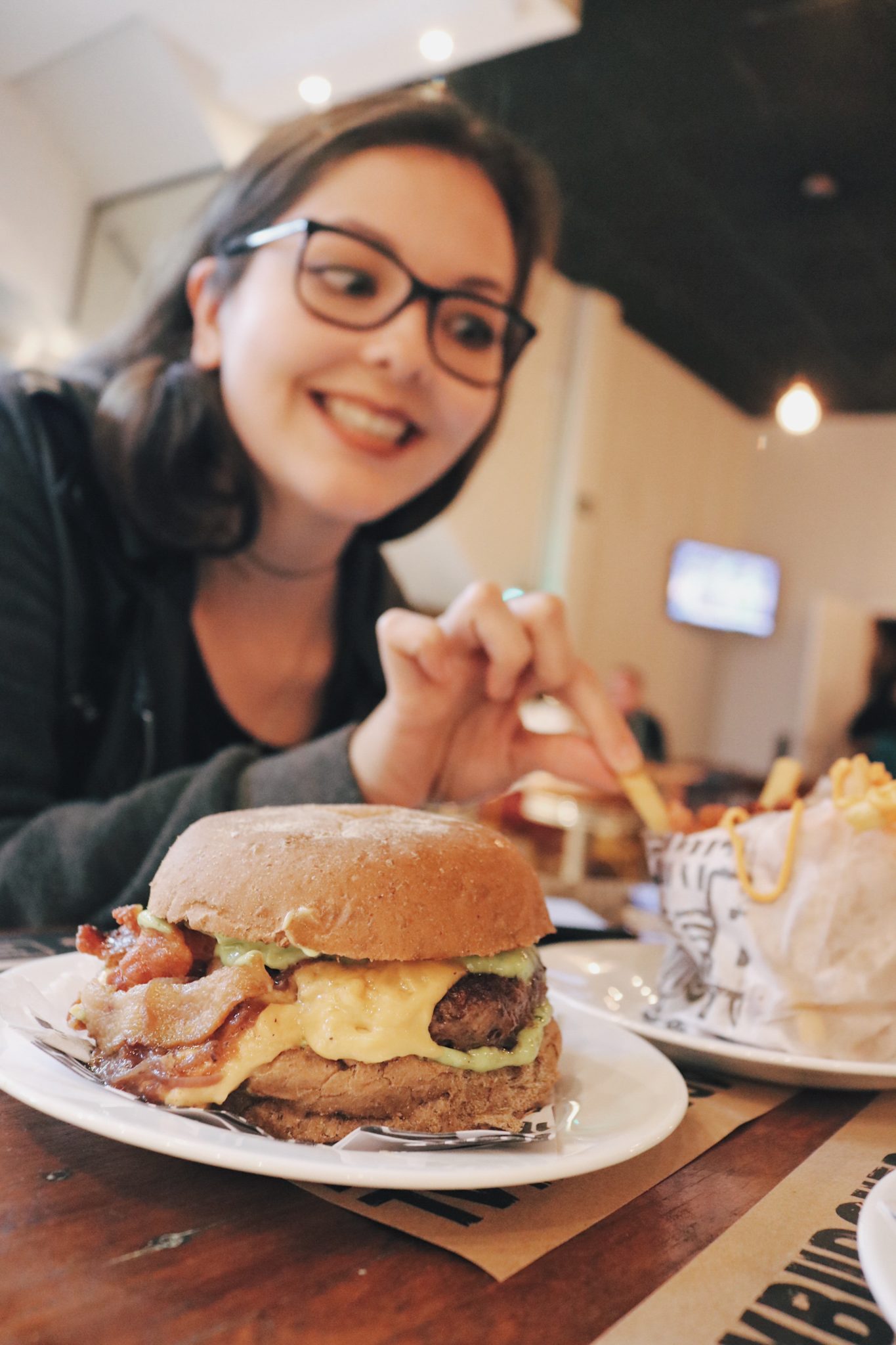 Os lanches são uma delícia e o tamanho é grande, mas não exagerado, na real é o tamanho ideal para comer com a mão, vai se lambuzar um pouco – veja os stories eu puxando um alface todo desconjuntado – mas é assim que deve ser! Mais uma vez bato na tecla, veja os preços no cardápio que coisa linda! É praticamente um combo em um fast food!